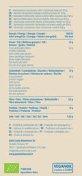 Organic durum wheat semolina, Dehydrated organic tomato 0.8%, and Dehydrated organic spinach 0.4%